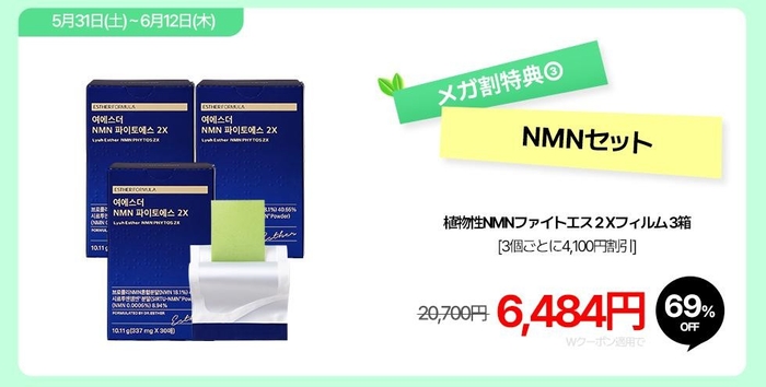 特典③ 植物性NMNファイトエス2Xフィルム 3箱 [3個ごとに4,100円割引]