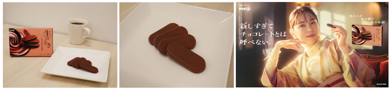 大正15年に「明治ミルクチョコレート」が誕生し、昭和では“アーモンドチョコ”“きのこの山”など食感豊かな商品を発売し、チョコレートの楽しみ方を広げました。そして平成に入り、健康志向に応えた“チョコレート効果”が誕生し、また“Meiji THE Cacao”では、産地や香味といった嗜好性を提供してまいりました。そして令和に入り、改めてお客さまにチョコレートを食べる幸せな体験をより多くの人に届けたい、その為には、チョコレートの楽しみ方の幅をもっと広げなければならないという使命感のもと、チョコレートの食感にフォーカスし、やわらかくて、食感を楽しむチョコレートにチャレンジさせて頂きました。テスト商品の展開を経て、今年5月に「生のとき」を発売させて頂きました。