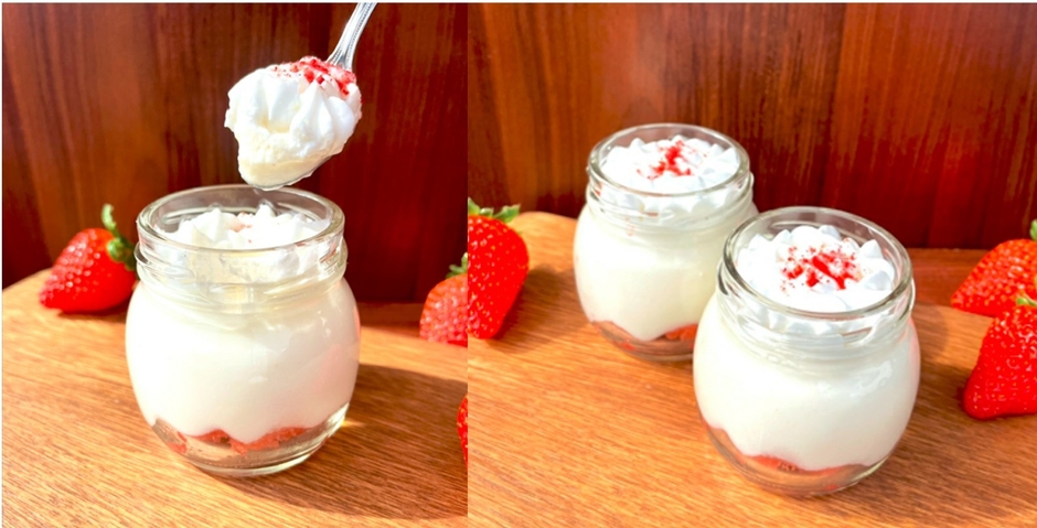 しっとりとしたいちごのスポンジの上に、ミルクとクリームチーズをあわせたクリームをつめました。いちごの香り漂う、クリーミーなティラミスです。