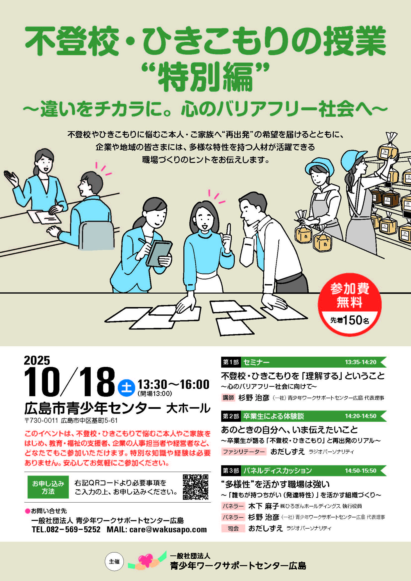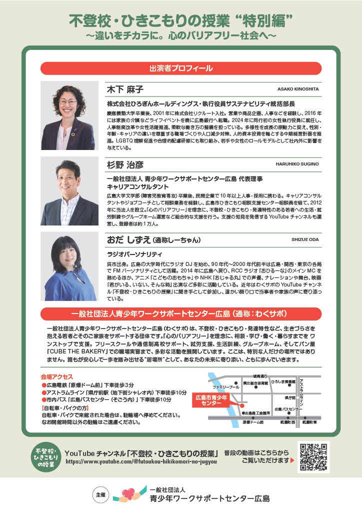 広島で無料イベント開催|「不登校・ひきこもりの授業」特別編 ~違いをチカラに。心のバリアフリー社会へ~ | NEWSCAST