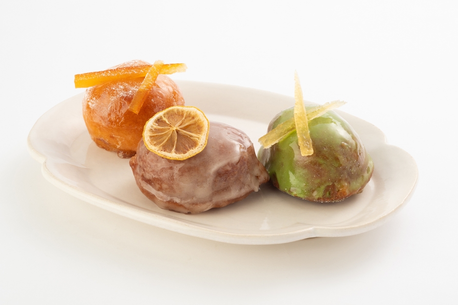 マンゴーの果肉入りのサッパリとした自家製マンゴークリームをたっぷり絞った生ドーナツ。