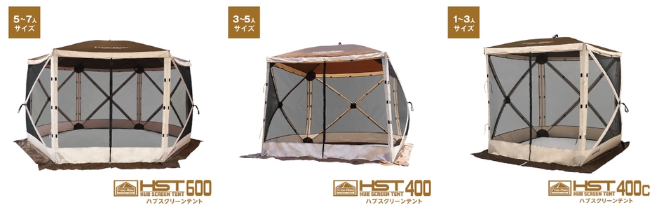 株式会社嶺幸 Free-Rise事業部(本社:長野県松本市、代表取締役:桐原 利郷)は、人気アウトドアテント<HUB SCREEN TENT>に従来からラインナップしていた大型サイズ(600)に加え、新たにファミリーサイズ(400)とコンパクトサイズ(400c)の2サイズを追加ラインナップしました。