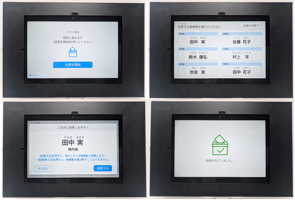 電子投開票では、有権者は投票所に設置されたタブレットを使用し、画面上に表示される候補者や選択肢を確認し、投票を行います。これにより、誤記による無効票が無くなるほか、投票内容はデジタル形式で記録されるため、投票が完了すると結果が迅速に集計されることで、開票作業が自動化され、紙や人件費などのコスト削減にも貢献します。