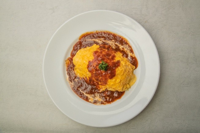 TOMATOチキンライスを優しいとろとろ卵とデミグラスソースで仕上げた贅沢オムライス。ランチタイムにぴったりのボリューム感で、お腹も心も満たされる一皿です。