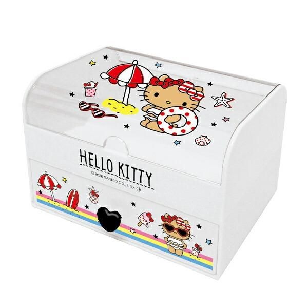 こちらは日焼けキティの、ゴールドが煌びやかなバニティケースです。トレイ付きのため、コスメやアクセサリーなどをわかりやすく取り出しやすく収納してください。