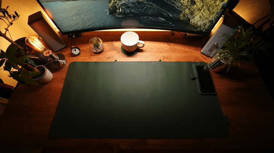 ~デスクマットとワイヤレス充電器を兼ね備えた、収納性抜群の革新的なマット~