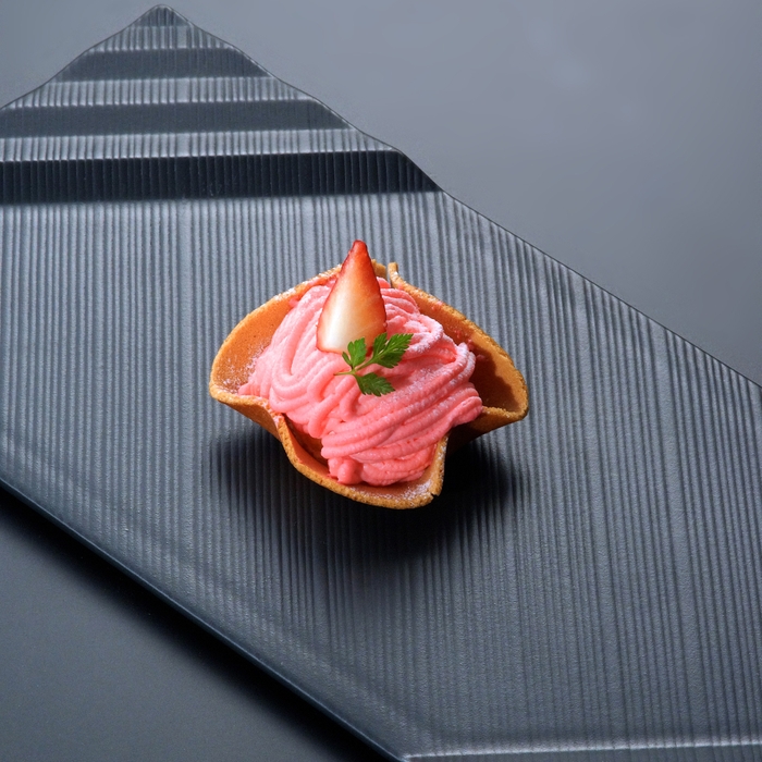 口どけの良い苺のクリームにパリッとしたシガレットクッキーを用いたモンブラン。苺の甘い香りと酸味が爽やかな一品です。