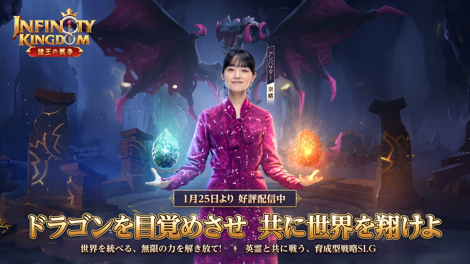 3D映像美×英霊×ドラゴンが繰り広げる育成型戦略SLG 『インフィニティ キングダム-諸王の戦争』が1月25日に配信開始! 各種記念キャンペーンも開催!アンバサダーに女優の奈緒さんを起用
