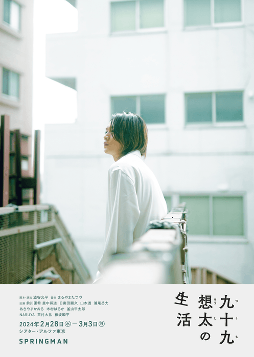 澁谷光平が主宰するプロデュース型ユニット、スプリングマンの新作舞台「九十九想太の生活」が 2024年2月28日(水)~3月3日(日)、シアター・アルファ東京にて上演される。