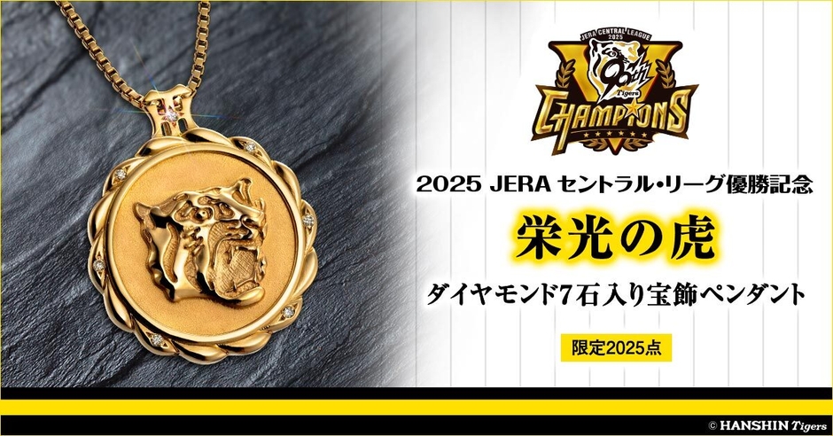 インペリアル・エンタープライズ株式会社(所在地:東京都荒川区、代表取締役社長:原 良郎)は、阪神タイガース 2025 JERA セントラル・リーグ優勝記念<栄光の虎>ダイヤモンド7石入り宝飾ペンダントを、I・E・Iオリジナルショップにて販売いたします。