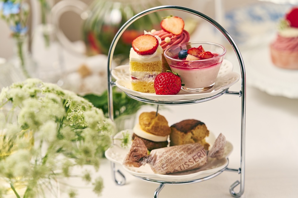 苺とハーブの爽やかなマリアージュを愉しむ、春のアフタヌーンティーが登場します。苺に香り豊かなハーブを合わせ、味わいはもちろん、香りまで堪能できる“食のアロマ”を取り入れたアフタヌーンティーに仕立てました。タルト生地にローズマリーとピスタチオを使用し、苺とローズマリーの香りが調和する「苺とピスタチオのハーブ香るタルト」をはじめ、苺の見た目が可愛らしい「苺仕立てのマカロン レモングラスのホワイトショコラ」、生地にもクリームにも苺を使用し、苺の豊かな風味を存分にお楽しみいただける「苺づくしのカップケーキ」など、苺の美味しさとハーブの爽やかな余韻が魅力のスイーツ全14種をラインアップ。心身ともにリフレッシュできる上質なティータイムとともに、みずみずしい春の移ろいを五感でお楽しみいただけます。