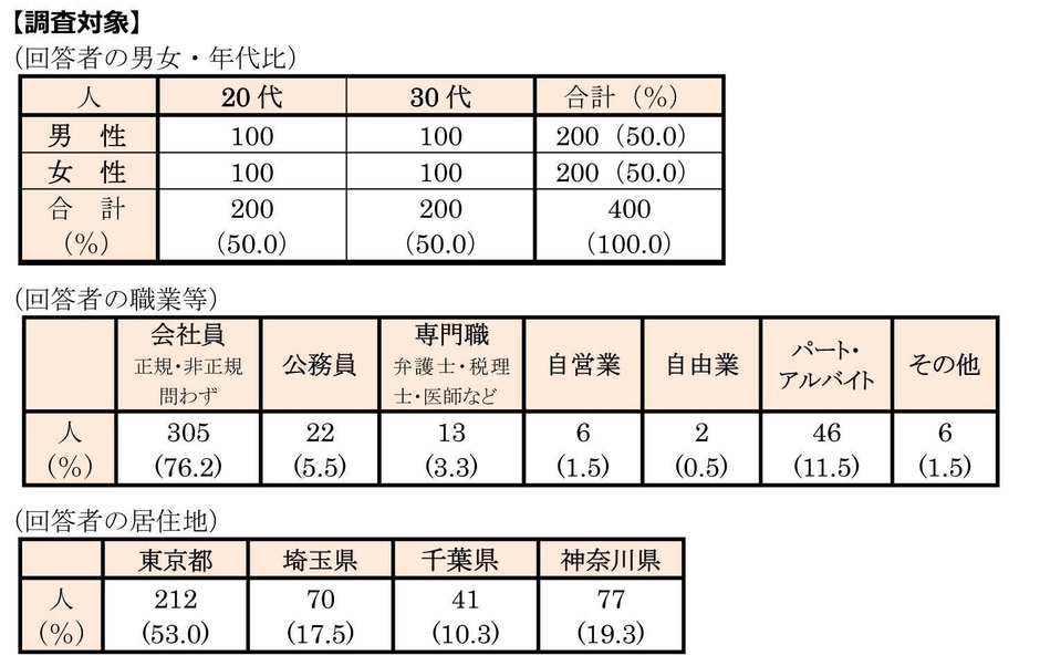 ◆ 調査対象:首都圏※在住 独身・ひとり暮らしの20代~30代 男女400人