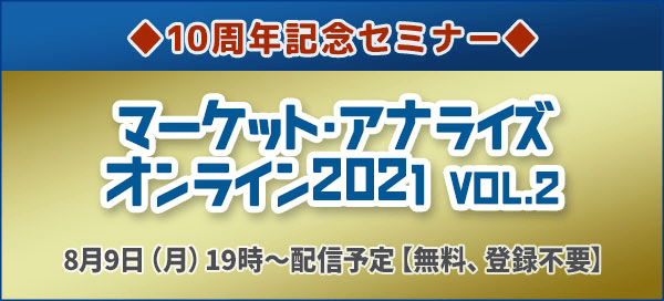 投資家必見!マーケットの未来を徹底解説!◆10周年記念セミナー◆「マーケット・アナライズ・オンライン 2021 Vol.2」8月9日(月)よる7時から無料配信!!