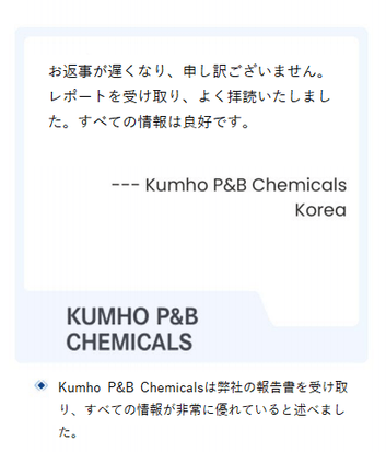 レポートを受け取り、よく拝読いたしました。すべての情報は良好です。」