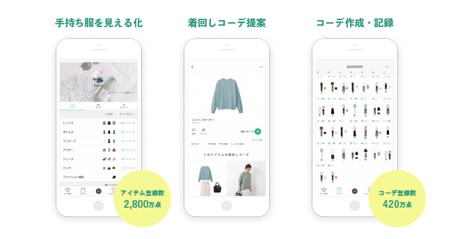 毎日のコーディネートを決めるためだけでなく、手持ちアイテムの活躍状況を振り返られるようにしたことで、【サステナブルな循環】をサポートするオンライン・クローゼットアプリへと進化しました。