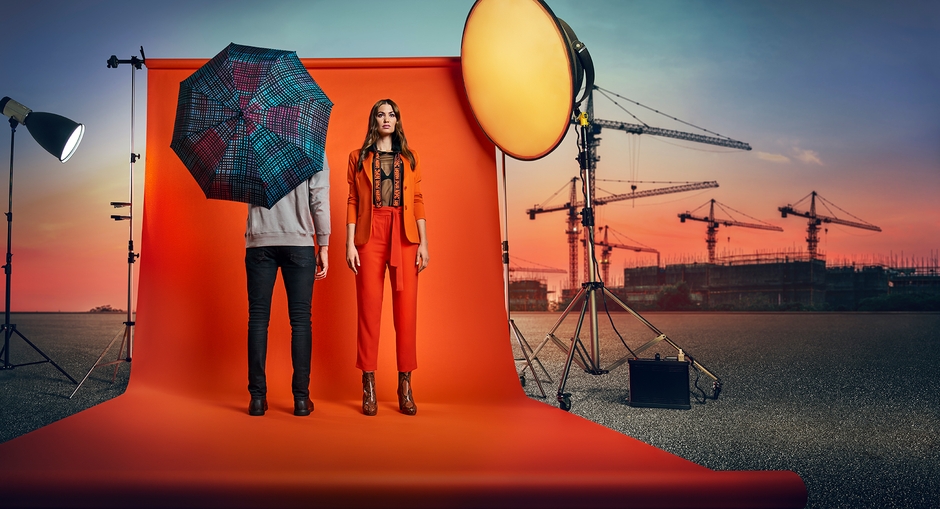 イメージビジュアルはすべて2人で写っており『共に』を表しています。また背景と傘のデザインがリンクしています。