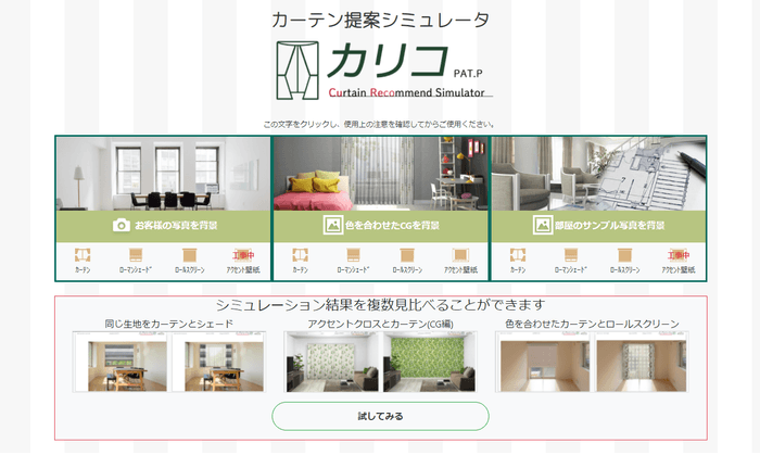 WEB上でお部屋に似合うカーテンを提案する カーテン提案シミュレータ“カリコ”を公開 ~産学金連携×専門店によるシステム~