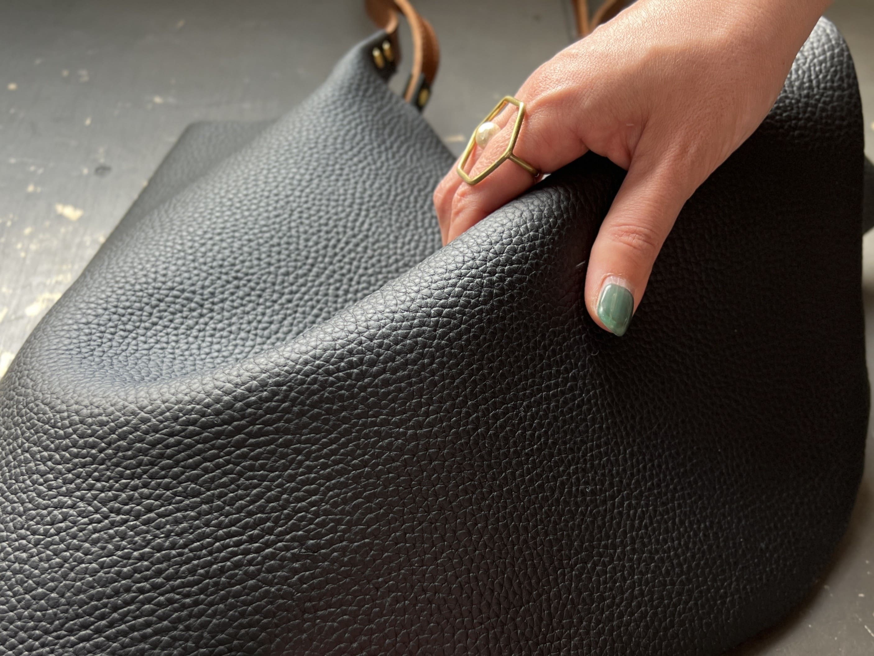 取っ手の付け根のタックのおかげか、マチのないデザインなのにたくさん物が入る感じがします。