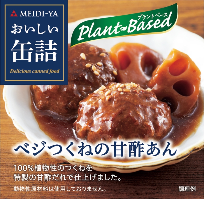 ■明治屋 おいしい缶詰シリーズからプラントベース「トマトときのこのベジミートバーグ」「ベジつくねの甘酢あん」新発売