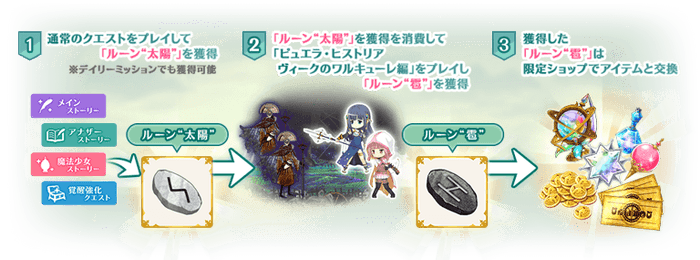 通常のクエストをプレイしてアイテム「ルーン“太陽”」を集めます。