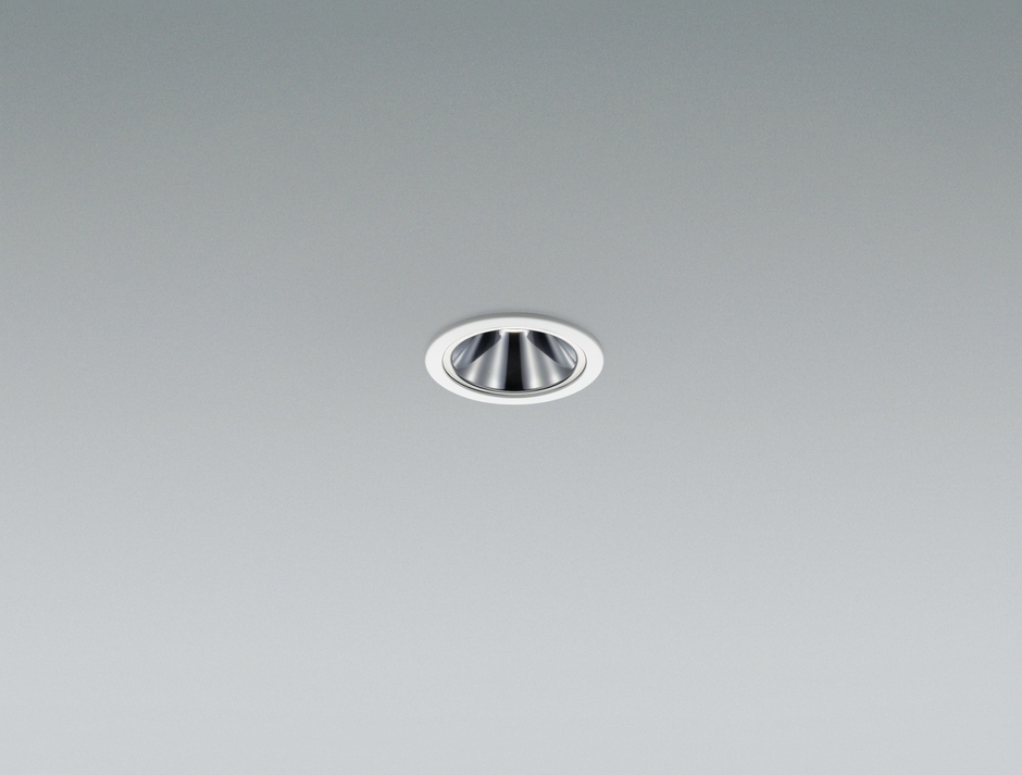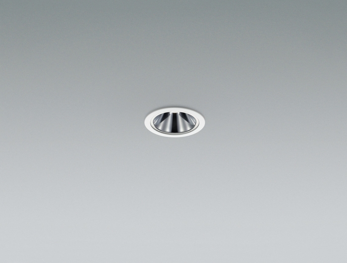 この度の新製品は、グレアカットアングルを深くし、グレアレス鏡面ミラーとワイド配光レンズで眩しさを軽減させ、どの角度から見てもグレアを感じにくい設計のベースダウンライトとなっております。さらに、従来のグレアレスダウンライトより約20%効率をアップさせ、広くフラットな配光に設計することで、しっかりと明るさを確保しつつ、水平面照度のムラを減らし、空間全体を効率よく照らすことが可能になりました。そのため、働き方や業務内容に応じて部署ごとにレイアウトを変更するオフィスや、フリーアドレス方式を採用したオフィス空間で活躍いたします。またWELL認証※1の加点項目である「照明のグレアの管理」においての基準値もクリアしており、オフィス空間におけるグレアを低減し、心地良い視環境の実現を可能にいたしました。