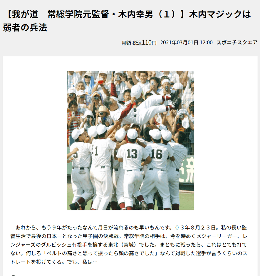 半生記「我が道」常総学院元監督・木内幸男さん公開スタート!