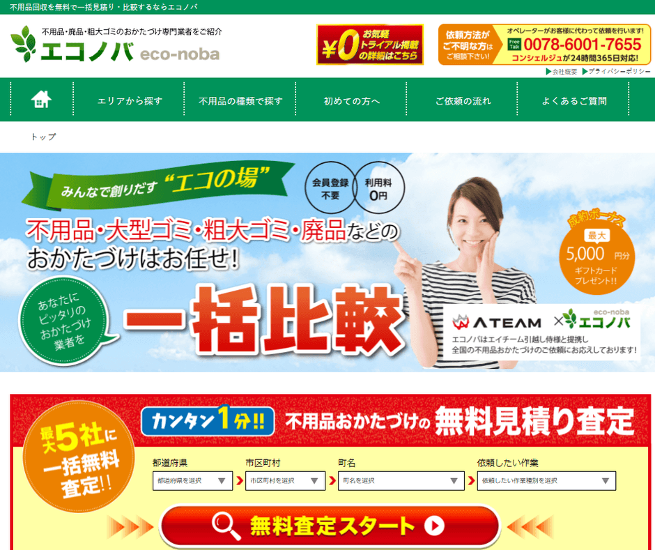 2013年7月に不用品・大型ごみ・粗大ごみ・廃品などのお片付け業者を一括見積比較できるサイトの提供を開始し、2021年10月に依頼者が依頼を出しやすいようにサイトをリニューアルしました。