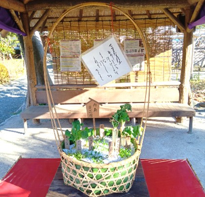 ②ジャンボ七草籠の展示:売店前四阿(あずまや)