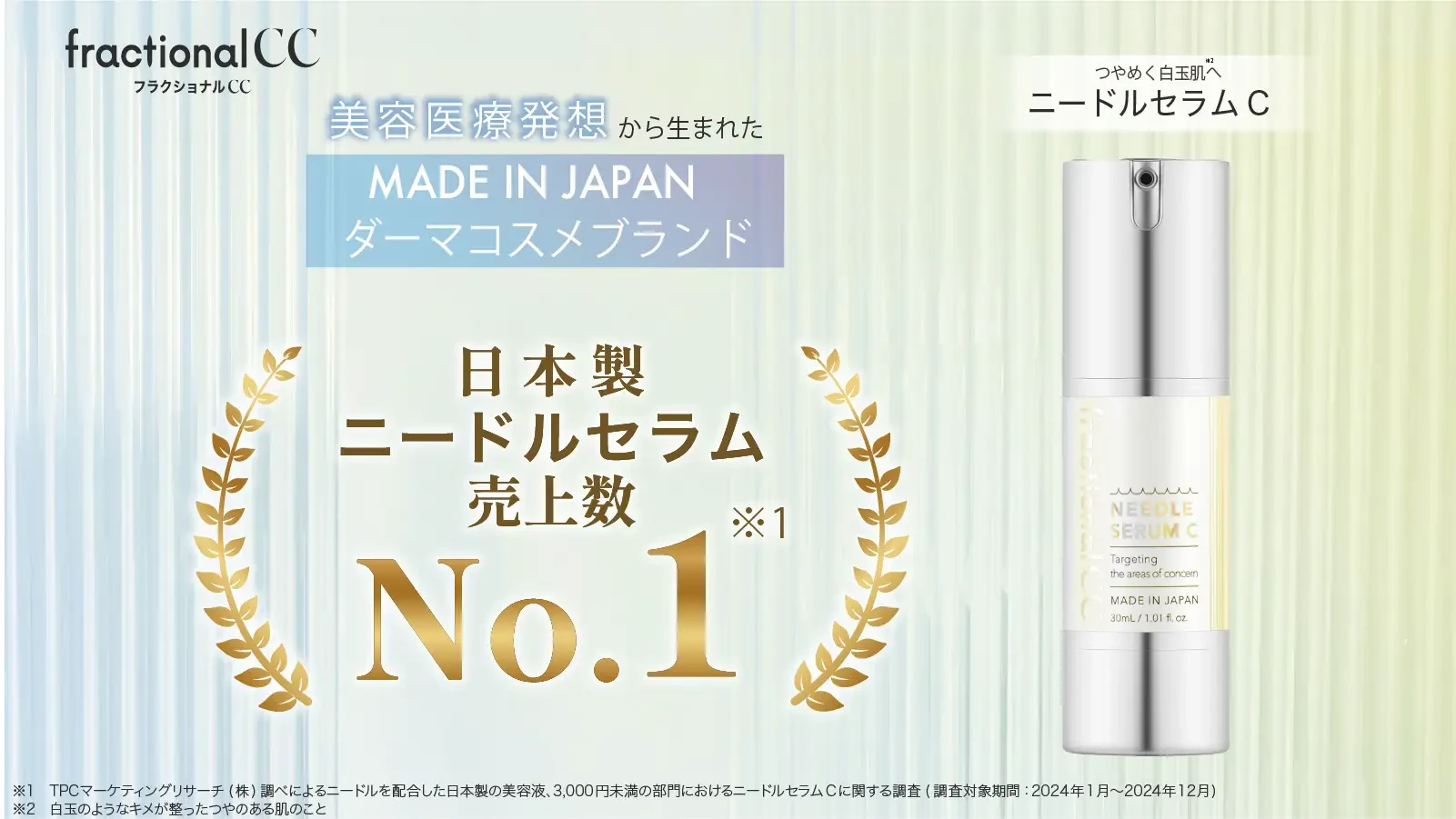 ※3 TPCマーケティングリサーチ㈱調べによるニードルを配合した日本製の美容液、3,000円未満の部門におけるニードルセラムCに関する調査(調査対象期間:2024年1月~2024年12月)