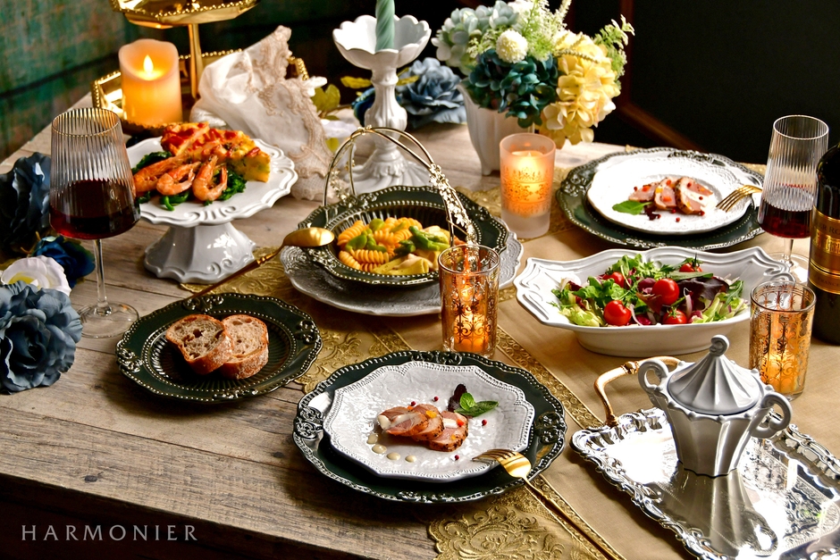テーブルウェアやインテリア雑貨、クリスマス雑貨の輸入卸を行う株式会社ハルモニア(所在地:東京都目黒区、代表取締役:小松 享史)は、自宅での特別な日のディナーやおもてなしシーンにおすすめの25SS新作食器をメインに使用したおうちレストラン風テーブルコーディネートを提案します。