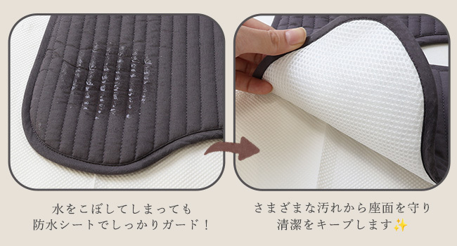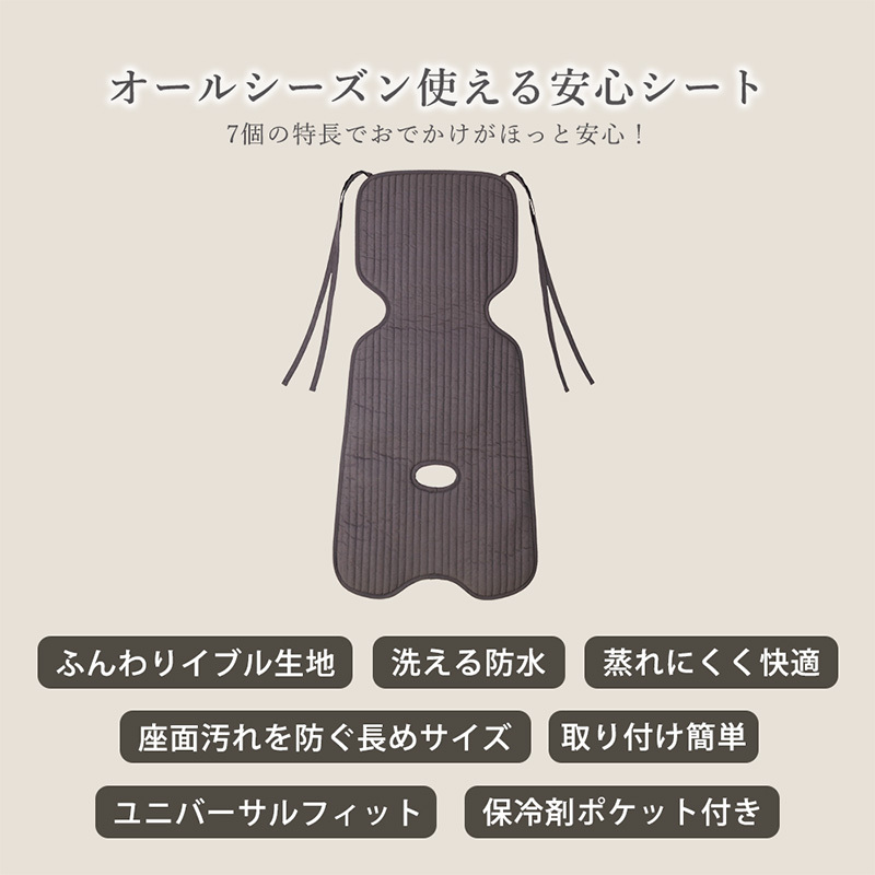 おむつ漏れ、汗、食べこぼし、雨や泥汚れまで、さまざまな“日常のハプニング”から座面を守り、清潔をキープします。