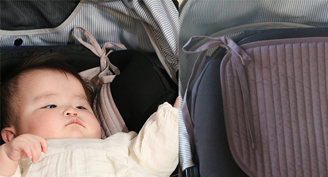 ベビーカーやチャイルドシートに取り付けることで、シートを取り外して洗うだけなので、ベビーカー全体を洗う手間が省け、日々のお手入れがぐっと楽になり、ママ・パパの負担を軽減します。
