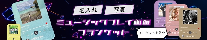 ミュージックプレイ画面ブランケットは、スマホのミュージックプレイ画面をモチーフにしたデザインで、写真の取り込みや名前などお好きな文字を入れることが出来るオリジナルのブランケットです。