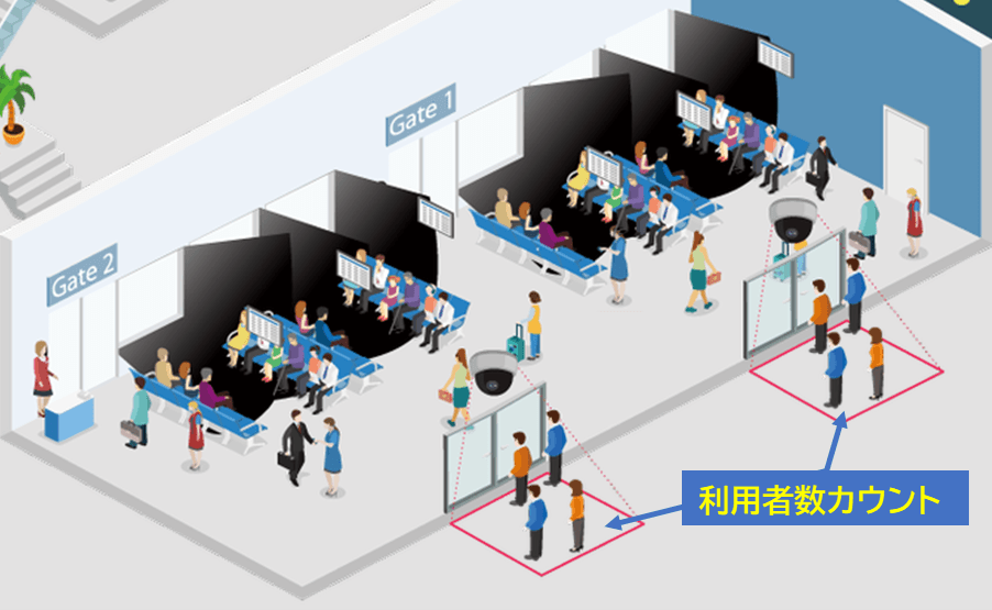 本取り組みでは旅客ビルに設置されたカメラの撮影映像を解析して、ビルの利用者数カウントを行います。本取り組みにより、利用状況に基づいた利便性向上の施策検討などが可能になります。これにより、旅客ビル利用者の満足度向上などが期待されます。