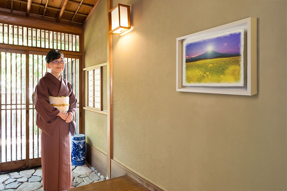 「和紙の絵写真」とは、作家自ら撮影した風景写真を、絵画調にグラフィック処理して、手すき和紙にプリントしたデジタル版画です。