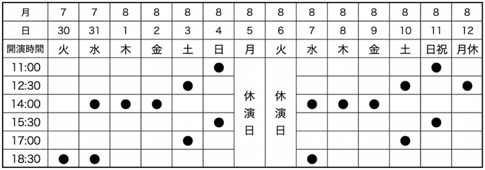 日時: 2024年7月30日(火)〜8月12日(月休) 全18公演