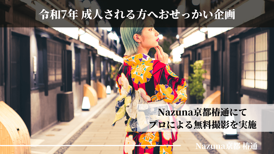 京都でフレンドリーラグジュアリーな町屋旅館を手掛ける株式会社Nazuna(代表取締役:渡邊 龍一)は、令和7年成人式を迎えられる皆様を対象に、特別な「おせっかい企画」を実施いたします。本企画では、プロのカメラマンによる記念撮影や宿泊招待を通じて、一生に一度の晴れの日をさらに特別な思い出として刻むお手伝いをいたします。