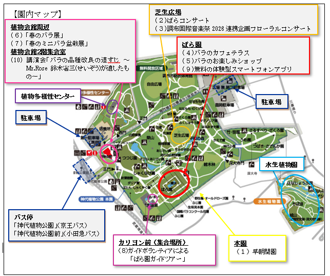 ※「春のバラフェスタ」開催期間中は混雑が予想されます。公共交通機関をご利用ください。