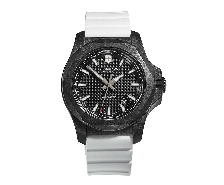 「I.N.O.X. カーボンメカニカル」は、強靭なカーボン複合素材を用い、ワンランク上の性能と耐久性を誇ります。ダイヤルにはマルチツールでも採用されているギョーシェ加工を施し、オリジナル・マルチツールを象徴的に表現しています。また、ウォッチ対象の5年間保証+(プラス)により、品質を重視するビクトリノックスのサービスを徹底しています。