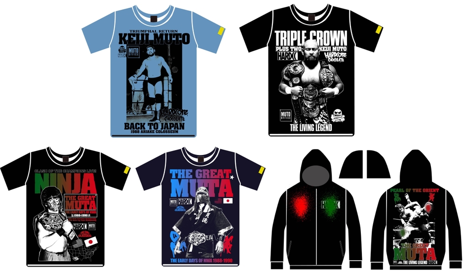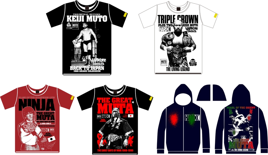 ハードコアチョコレートより、 武藤敬司とグレート・ムタの迫力満点デザインの コラボレーションアパレルが12月に登場!