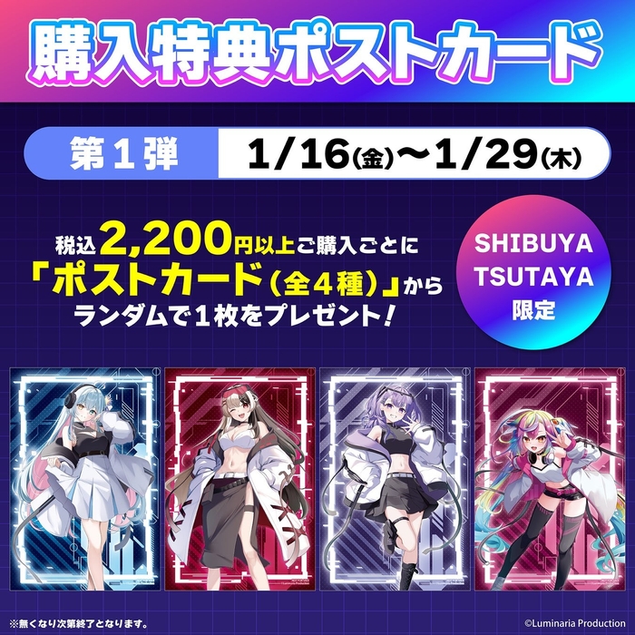 ■対象商品:1会計2,200円(税込)以上購入ごとに、ノベルティ「オリジナルポストカード」をランダムで1枚プレゼント!