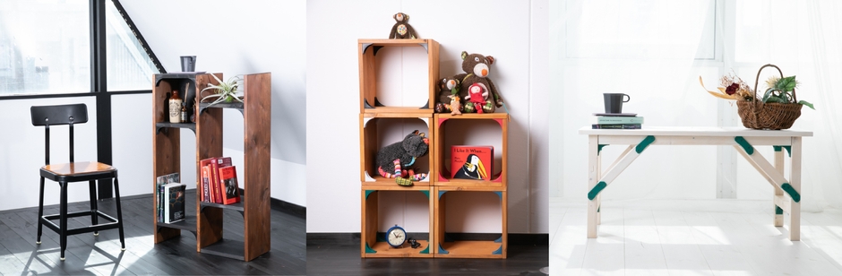樹脂成型の技術を生かし、自分たちも楽しくなるものを作ろう!という発想から生まれたDIYブロックは3種類でした。当初のパーツでもたくさんのDIY家具を作ることは可能でしたが、作業途中で難しかったこと、できなかったことをユーザーと社員の声から拾い集め、新たなパーツの提案に至りました。