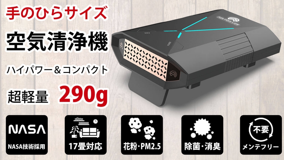 手のひらサイズで17畳対応!ウイルス、花粉も除去 小型でハイパワー空気清浄機