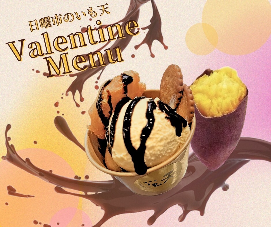 バレンタイン企画として、新しいいも天の食べ方を知ってもらいたいという思いで今回の企画に至りました。ホクホクのいも天と、サクサクのミレービスケット、甘いアイスとチョコの新食感を、大切な方と思い出の味にしてみてはいかがでしょうか。