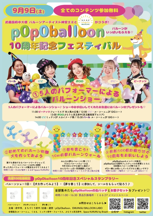 武蔵国府中大使 バルーンアーティスト神宮エミとキテキテ府中マルシェがコラボ!p0p0balloon10周年記念フェスティバルも同時開催!