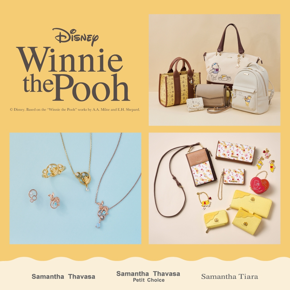 サマンサタバサグループから『くまのプーさん』コレクションが登場。『くまのプーさん』の世界観たっぷりのアートワークから、ブランドごとに異なる、「プー」や「ピグレット」の表情に大注目のアイテム。