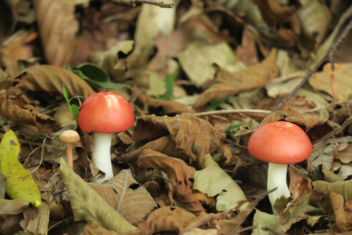 猛毒を持つことで、英名では「死の天使」、「破壊の天使」とも呼ばれる毒きのこです。真っ白な美しい姿が落ち葉の中でよく映えますが、少し食べただけで死にいたります。