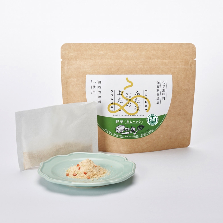 日本食の出汁の基本として、鰹などの魚または鶏ガラなど動物性由来の食材で出汁をひいている料理が多いことで、ヴィーガンの方が日本食を食べられない料理とされてきました。動物性由来の食材を使用しない『ふたばのおだし 野菜』がヴィーガン認証取得することで国内外の様々な消費者に向けて安心安全な出汁パックの提供ができるように推進していきます。