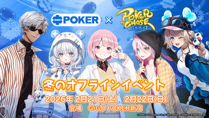 さらに、2026年2月21日(土)・2月22日(日)の2日間では、「GiGO POKER新宿」で『ポーカーチェイス』オフラインイベントも開催いたします。