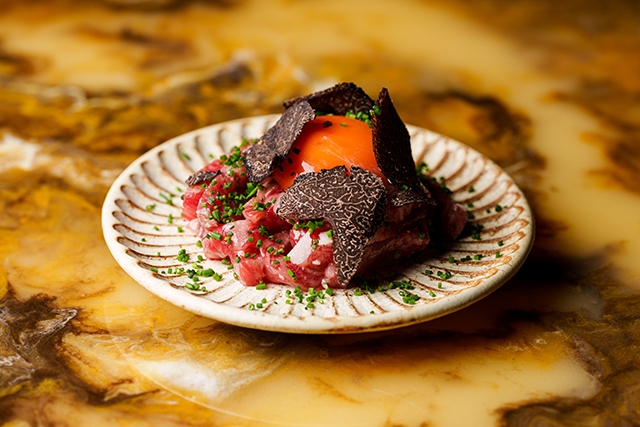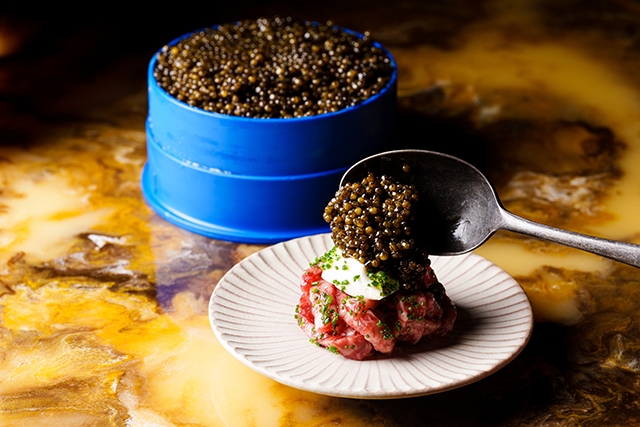 コース内容は季節によって変わるが、たとえば、近江牛ロースをサッと炙った「キャビアとマスカルポーネのユッケ」、「Legend of 【T】Sandwich(レジェンド of【T】サンドイッチ)」など、様々な味わい方を提案してくれる。
